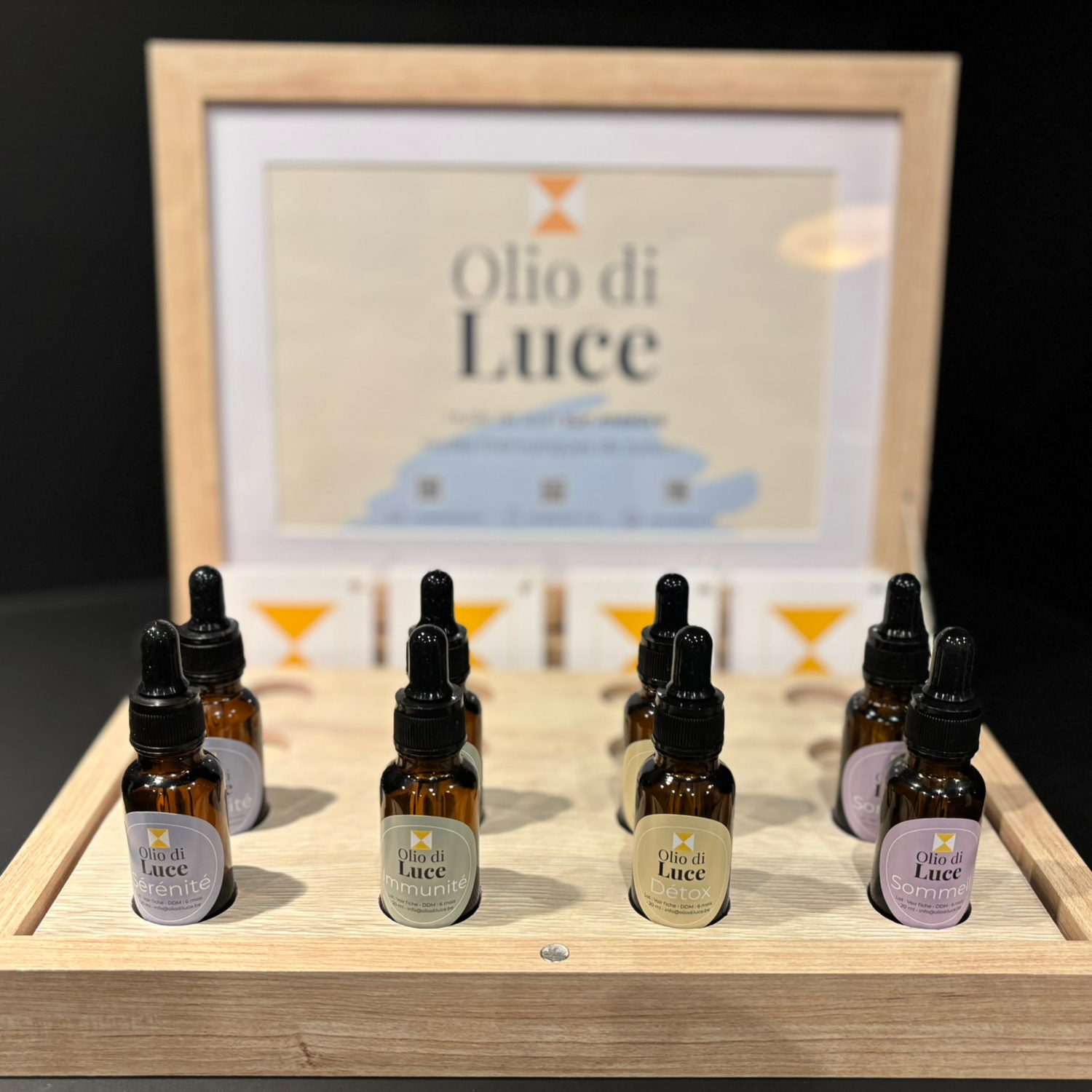 Olio di Luce, c’est une huile sur-mesure (création après consultation), mais aussi des huiles thématiques (disponibles chez notre partenaire Bellenger Daisy - Dolce Italiana Mariembourg).